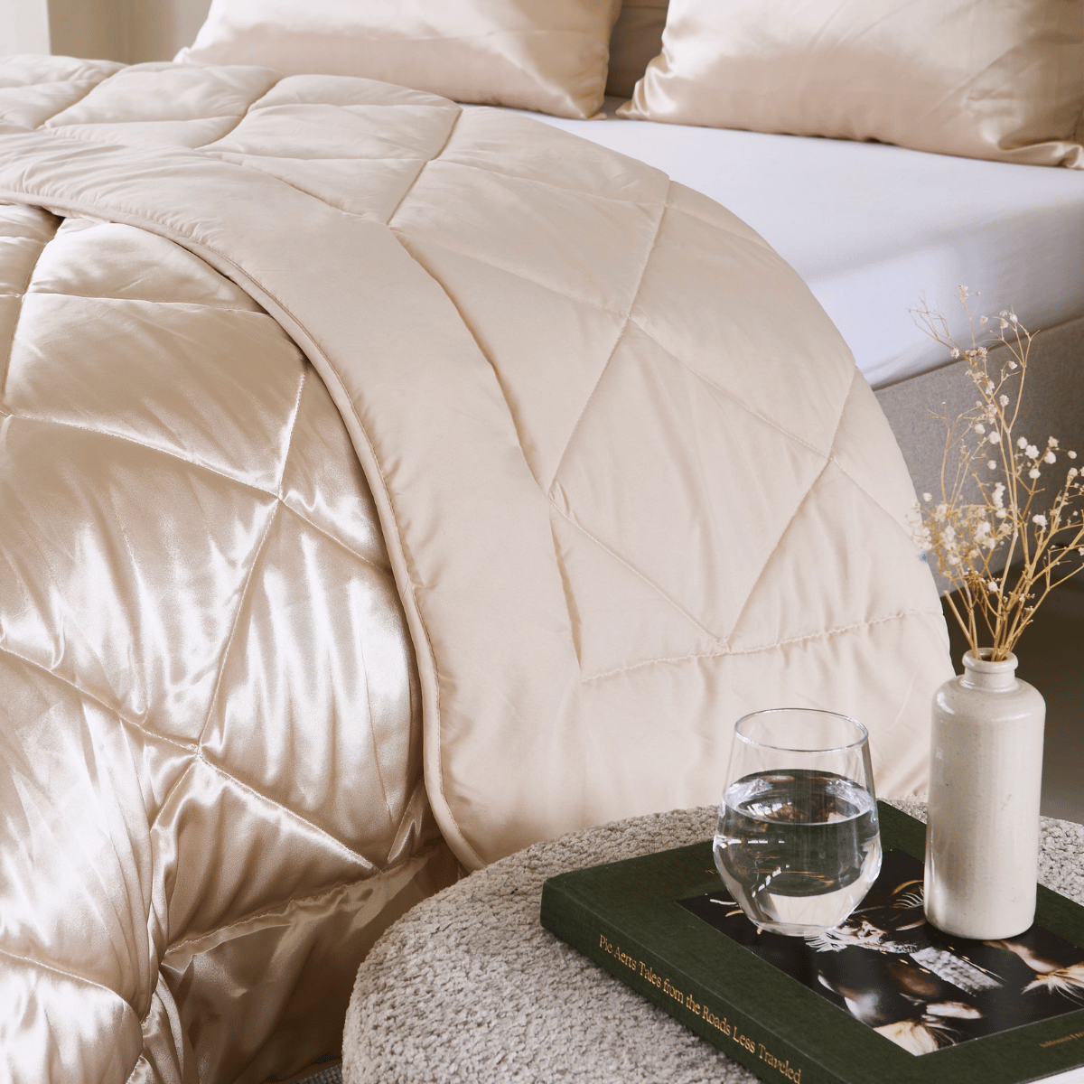 La couette lavable parfaite pour les sleeping beauties parmi nous. Découvrez le luxe d'un tissu satiné brillant et le confort d'un rembourrage régulateur de température.