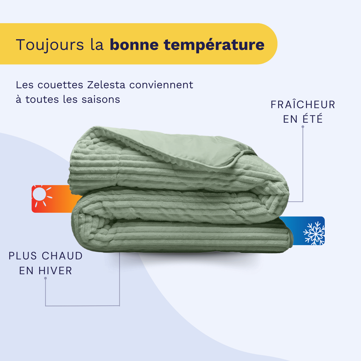 La plupart des couettes Zelesta conviennent à toutes les saisons !