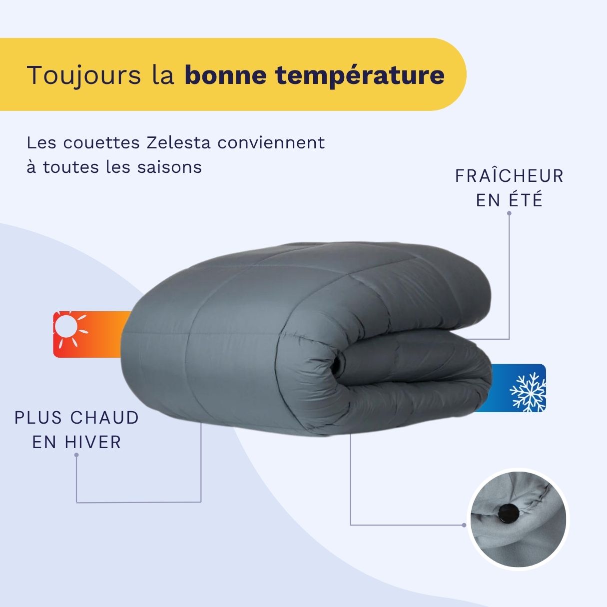 La plupart des couettes Zelesta conviennent à toutes les saisons !