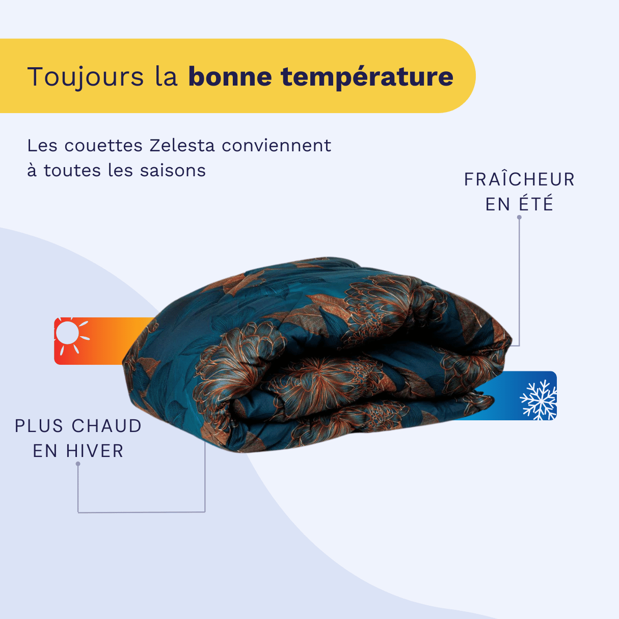 Changer et faire son lit chaque semaine est une tâche que peu de gens attendent avec impatience. Et si nous vous disions qu'avec Zelesta, cela appartient au passé ? Une nouvelle définition de votre sommeil commence avec les avantages pratiques de nos couettes :